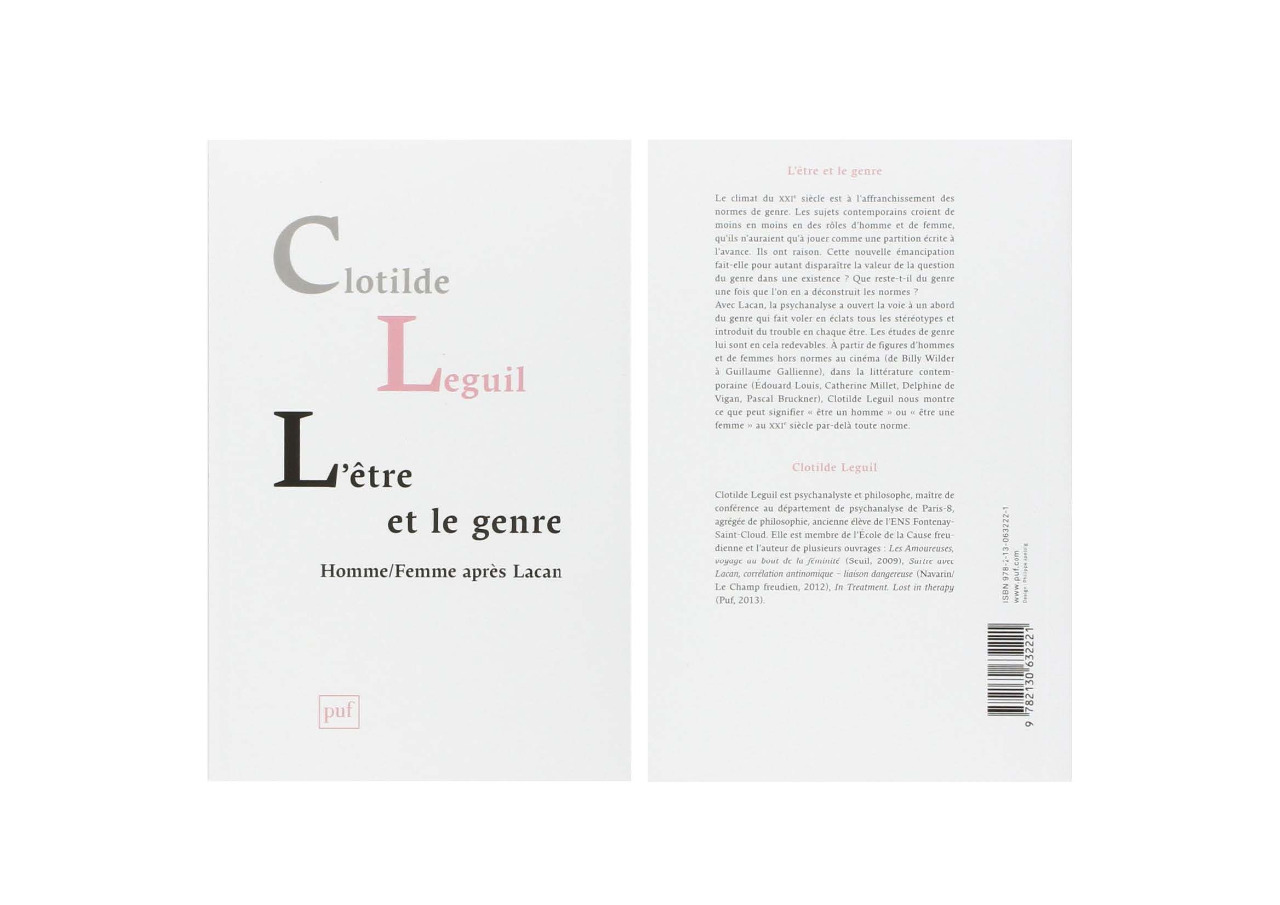 Cet essai part du climat de déconstruction du genre propre à notre époque, pour envisager le genre par-delà l’assujettissement aux normes sociales. Il rend compte de deux approches contemporaines fort distinctes du genre, celle des études de genre, issues de la pensée féministe et universitaire américaine, et celle de la psychanalyse lacanienne. Pour les premières, le genre est d’une atroce pesanteur et conduit les sujets à renoncer à leur désir. Pour la seconde, le genre est d’une insoutenable légèreté, au sens où aucune norme ne peut délivrer à des sujets singuliers un mode d’emploi pour être homme ou femme.